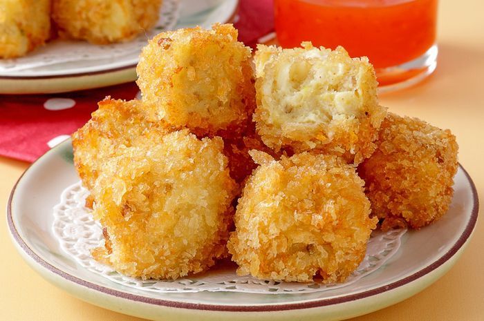 4. Goreng di dalam minyak yang sudah dipanaskan hingga matang dan berwarna kuning kecokelatan. Tiriskan.