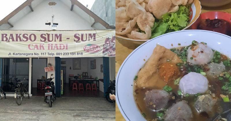 Bakso Sumsum Cak Hadi terkenal dengan sumsumnya yang lezat. Selain itu, ada aturan khusus saat mengonsumsinya. Salah satunya adalah tidak boleh menambahkan kecap dan saus ke dalam kuahnya. Pembeli bisa menambahkan kecap dan saus ke dalam satu wadah khusus. Aturan lainnya adalah sumsum harus dimakan utuh agar rasanya terasa gurih. Lokasinya berada di Jalan Kertanegara Nomor 117.