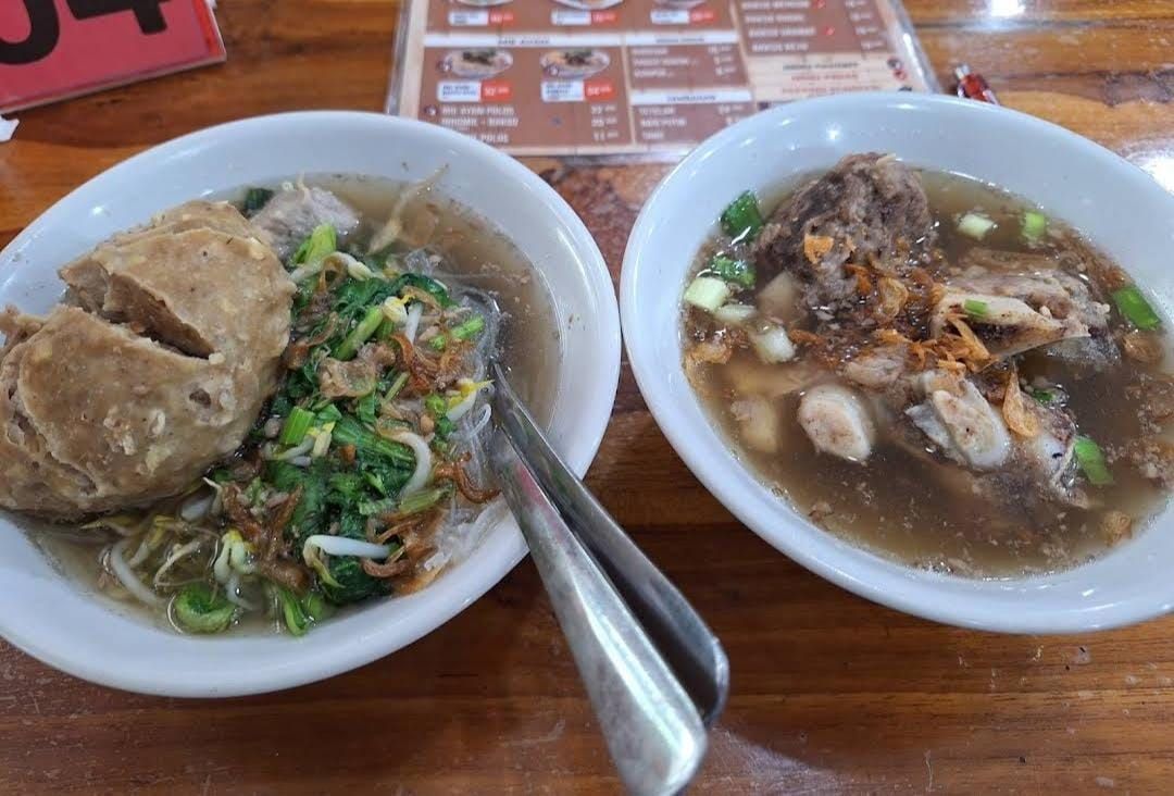Menu favorit di sini adalah bakso rusuk spesial dengan kuah kaldu yang gurih. Porsinya besar dan mengenyangkan, ditambah mi kuning atau bihun sesuai selera. Tempatnya bersih dan buka dari pagi, cocok untuk sarapan berat.