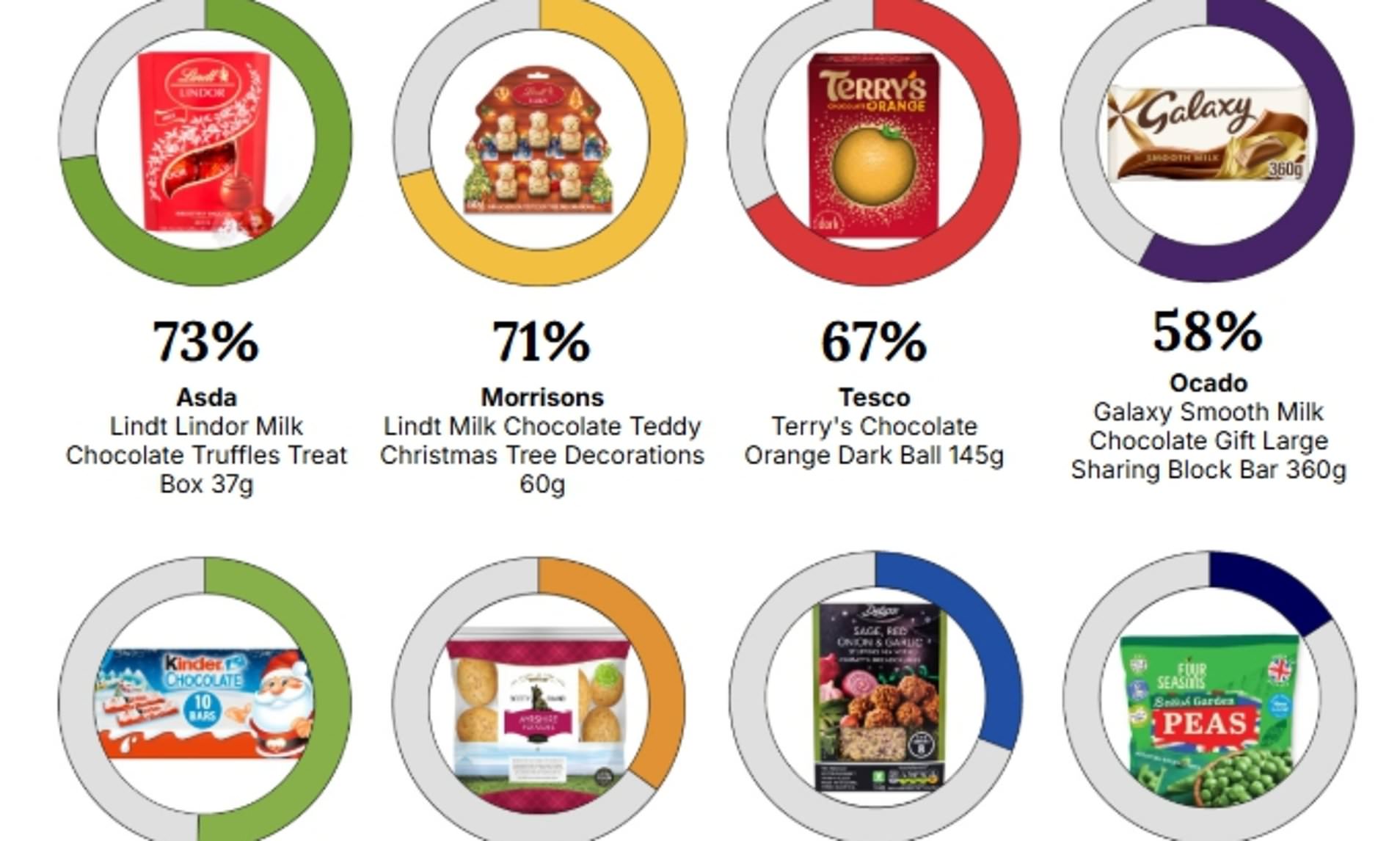 Sama halnya diMorrisons, dekorasi pohon Natal berbentuk beruang cokelat susu Lindt (60g) naik 71 persen dari £3,50 tahun lalu menjadi £6 tahun ini.