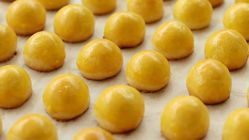 Setelah selai nanas dingin, bentuk bulat menggunakan sendok takar dengan ukuran ¼ sdt atau sekitar 3 gram. Letakkan di dalam kulkas agar lebih mudah saat digunakan sebagai isian.