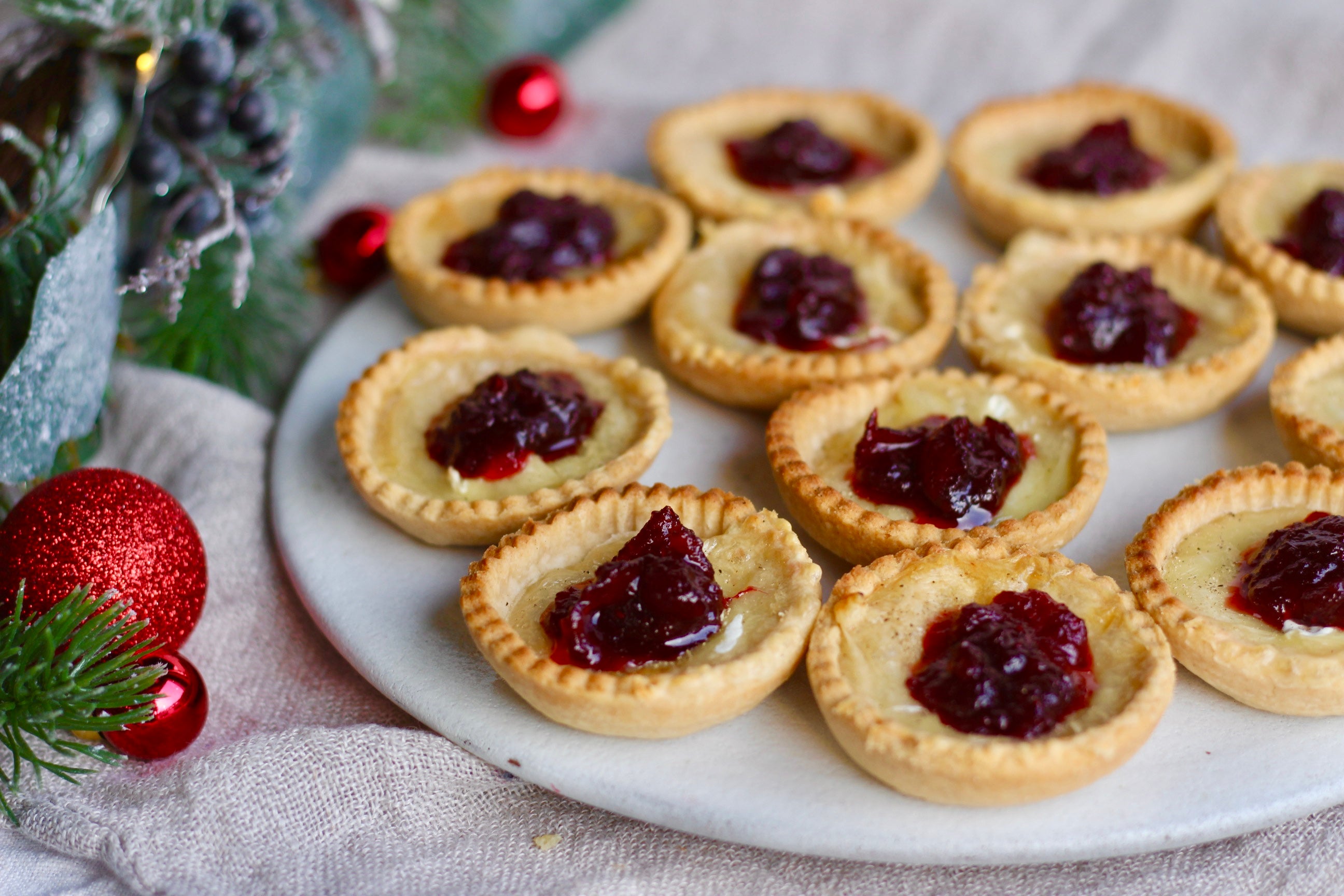 6. Biarkan sedikit dingin sebelum mengeluarkan tart dari cetakan muffin, letakkan di piring saji, dan beri masing-masing dengan ½ sendok makan saus cranberry.