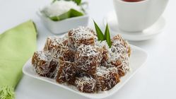 Setelah dingin, potong adonan sesuai selera (kotak kecil atau jari-jari). Gulingkan ke kelapa parut yang sudah dikukus. Sajikan.