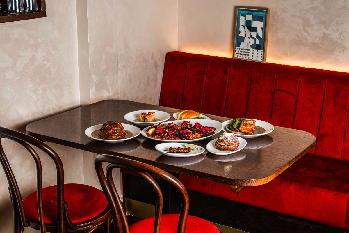 Sebuah tiramisu ube yang dikelilingi oleh parit berisi selai blueberry dan ube tres leches seharusnya tidak masuk akal, tetapi karya lezat yang renyah, manis dengan rasa asam ini di restoran Filipina Belly di Kentish Town memiliki keseimbangan yang sempurna. Lalu ada profiterole: karamel kecap yang disajikan secara menarik di atas bola yang berisi custard beku yang asin, manis, dan sangat menyenangkan. Pesan keduanya. Menyesal pasti terjadi hanya jika kamu tidak memesannya.