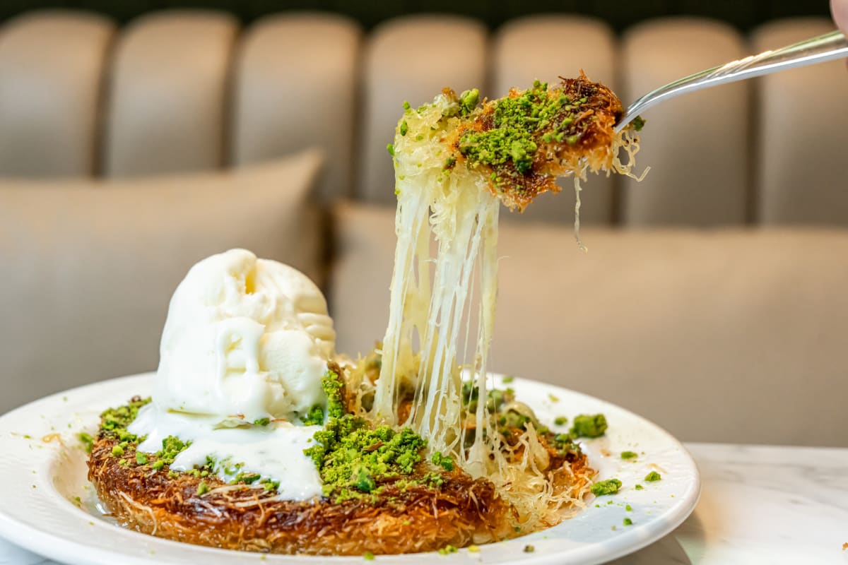 Di sebuah kota yang penuh denganTurkirestoran, künefe sering menjadi penari cadangan yang manis untuk hidangan berisi daging. Tapi di Antepliler di Green Lanes, kue ini yang renyah dan berwarna keemasan ini mengungguli segala hidangan sebelumnya. Künefe dibuat sesuai pesanan, jadi perhatikan bagaimana keju disembunyikan di antara dua lapisan adonan kataifi sebelum direndam dalam sirup di atas pan besi, membuat adonan menjadi keemasan dan keju meleleh sempurna.
