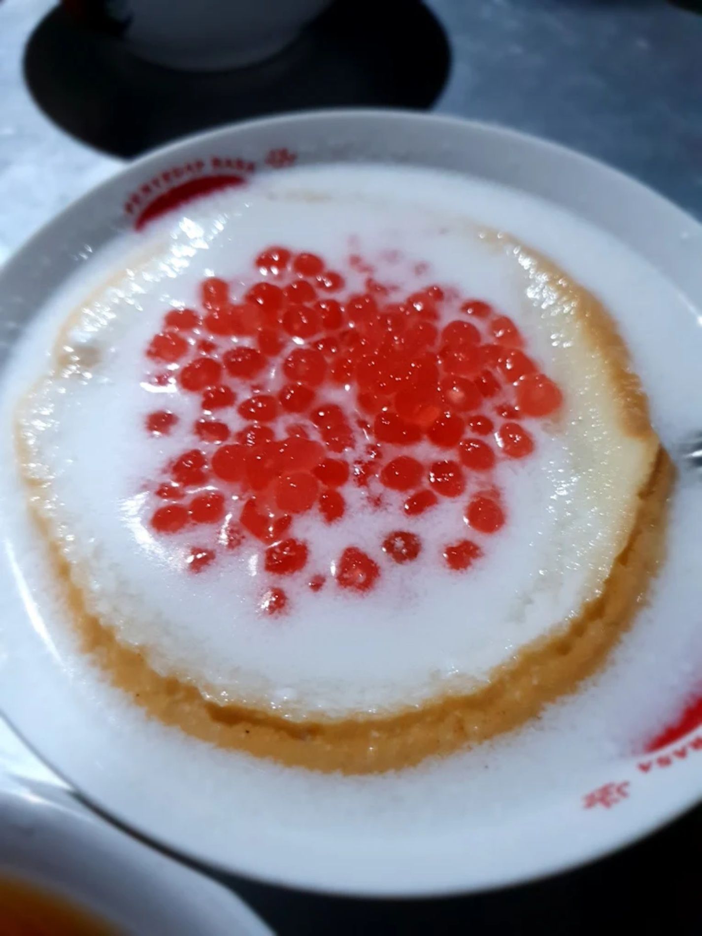 Memuat kacang hijau, roti tawar, pacar cina, serta sirup merah yang fresh.