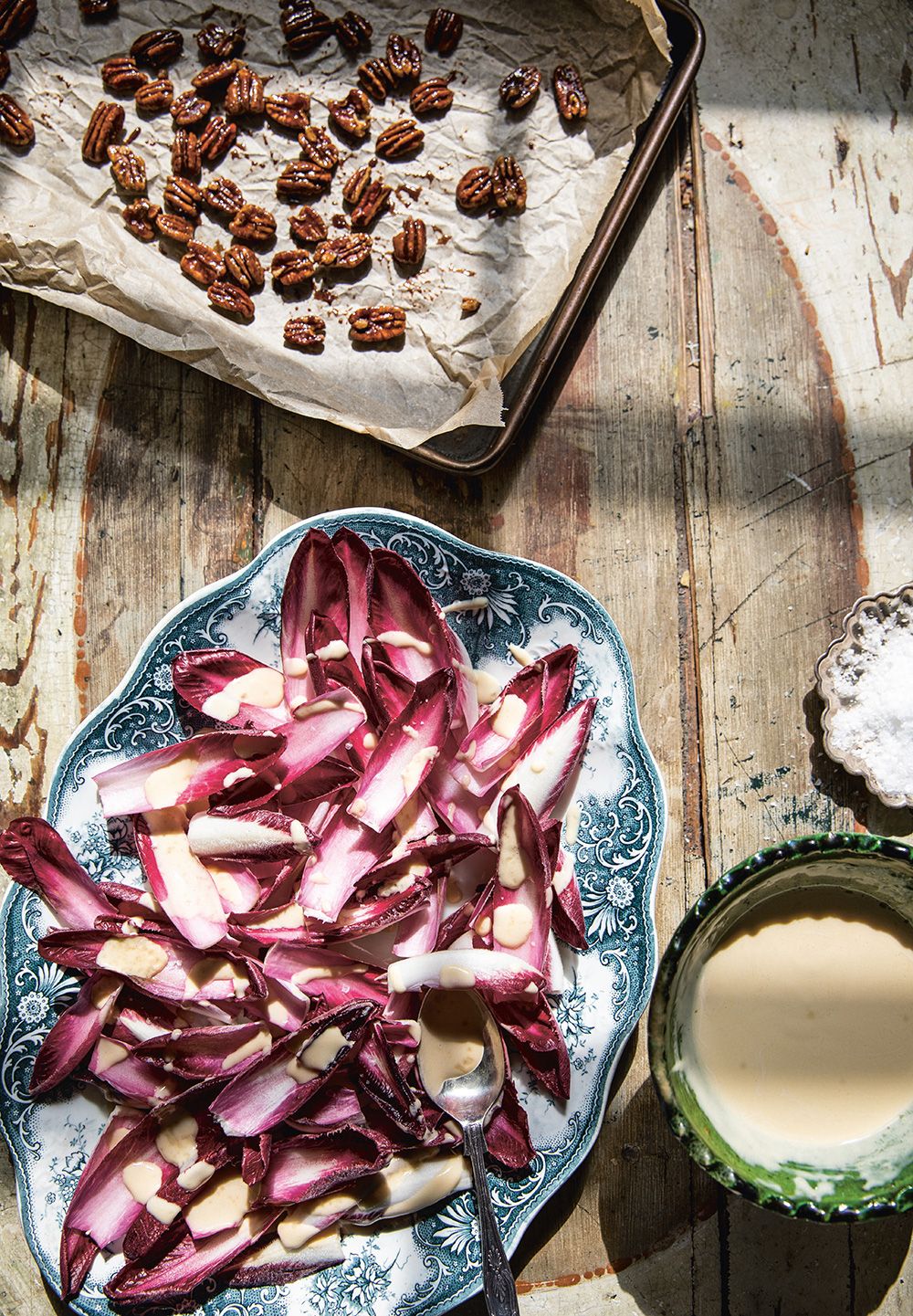 SALAD ENDIVE MERAH DAN KACANG PECAN YANG DIBUAT MANIS