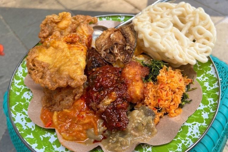 Dengan biaya sebesar Rp8.000 untuk porsi biasa danRp12.000untukporsilengkapnya, Kamubisa mencicipimakanannasijagumbersamauran sayur,lodehterong,samba lpencit,dadarjagunghinggaikaasin.