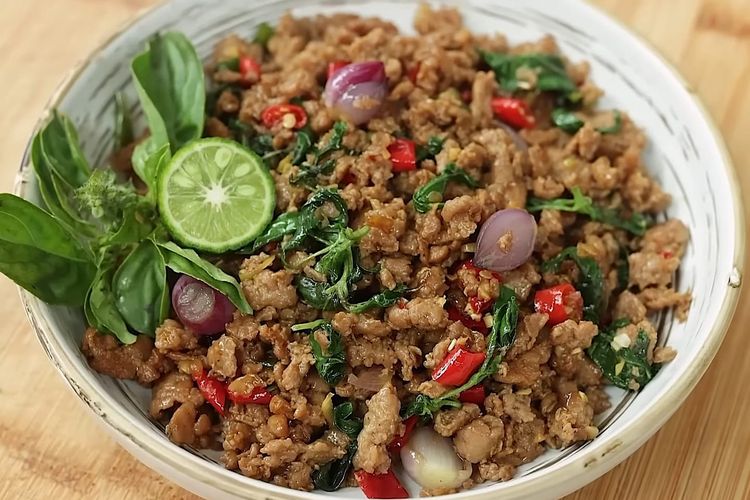 Tertarik oleh masakan Thai Basil Chicken (Pad Kra Pao), ayam giling tumis daun basil telah dimodifikasi sesuai dengan bahan-bahan yang lebih umum tersedia di Indonesia, sambil masih mempertahankan cita rasa yang lezat dan khas. Masakan ini sangat pas jika digunakan sebagai pilihan sehari-hari, pendamping makan siang, atau bahkan bekal praktis yang bisa disimpan selama beberapa hari.