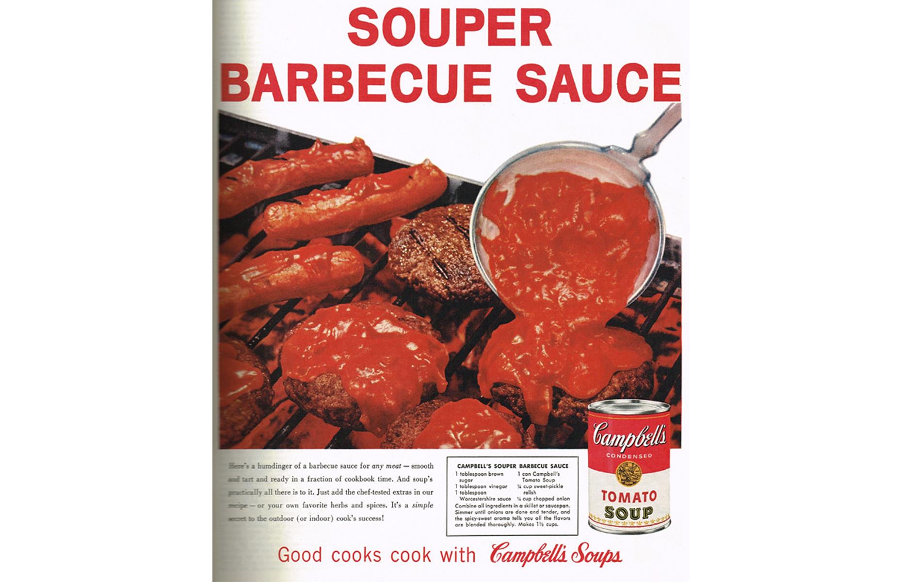 Dalam edisi tahun 1957 dariJurnal Rumah Wanita, Campbell menyarankan bahwa mencampur sup tomatnya dengan gula merah, cuka, saus Worcestershire, relish acar manis, dan bawang bombai yang dihancurkan akan menghasilkan pelengkap sempurna untuk daging panggang apa pun. Hanya gambaran saja, dengan saus yang menetes di atas sosis dan burger, sudah cukup membuat Anda mual.