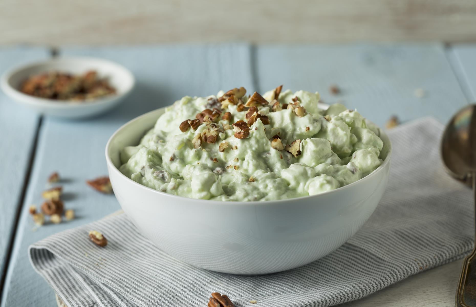Makanan yang tak terlupakan dari tahun 1970s yang ingin kami lupakan adalah salad Watergate. Bukan sebuah salad sejati, dessert ini terdiri dari nanas kaleng, marshmallow mini, krim kocok, kacang yang dipotong kecil, dan campuran pudding pistachio instan Kraft. Jika ada satu hal yang telah kita pelajari darinya, yaitu bahwa memasukkan berbagai bahan manis yang beragam ke dalam mangkuk yang sama dan berharap yang terbaik akan jarang menghasilkan sebuah dessert yang enak.