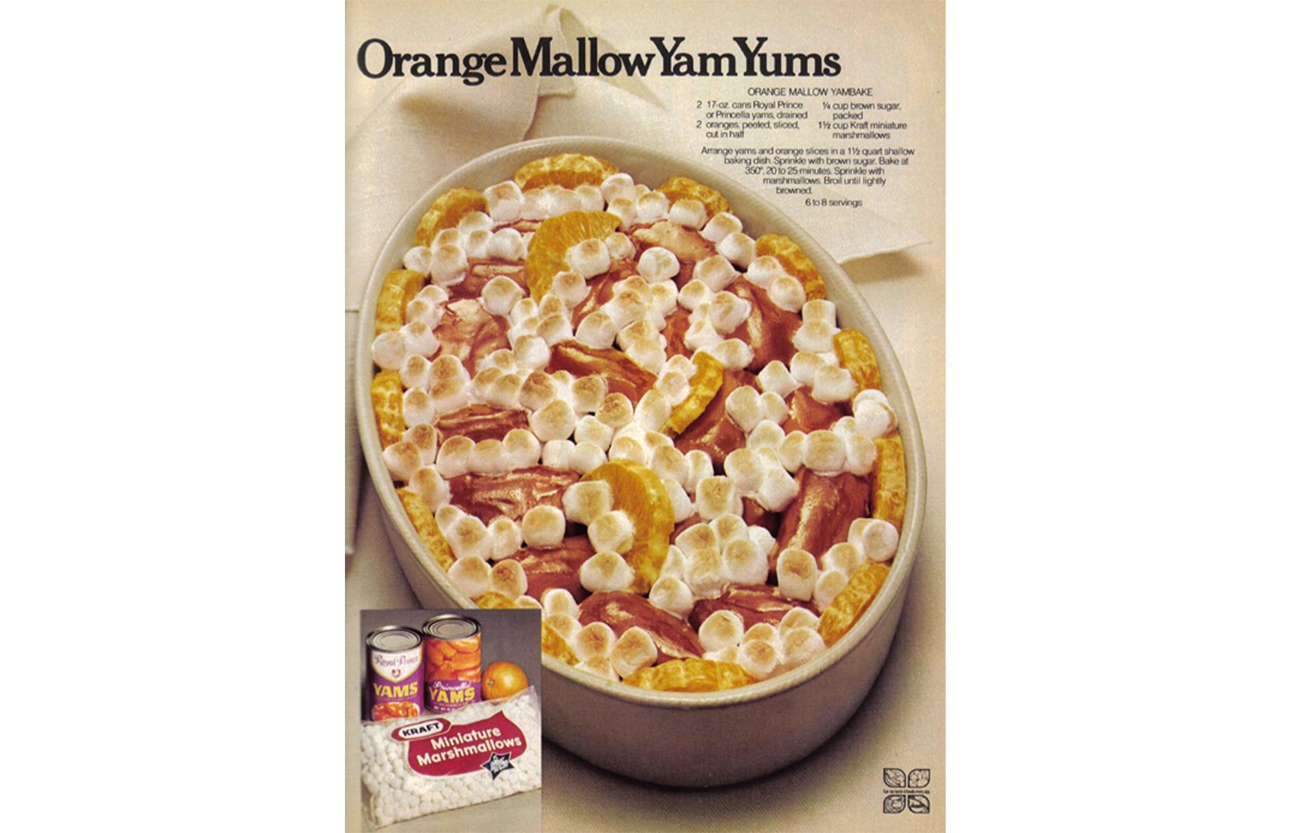 Iklan ini untuk kentang manis kaleng mungkin membuat beberapa orang memikir ulang hidangan sampingan Thanksgiving favorit mereka. Iklan tersebut menyarankan untuk menambahkan beberapa kaleng kentang manis yang sudah dikeluarkan airnya dengan marshmallow mini dan irisan jeruk, lalu taburi seluruhnya dengan gula merah, kemudian panggang di atasnya. Hasil dari pemanggangan ini tidak benar-benar terlihat menggugah selera, tetapi setidaknya tidak jauh berbeda dengan kentang manis yang dimakan di Amerika Serikat saat ini.