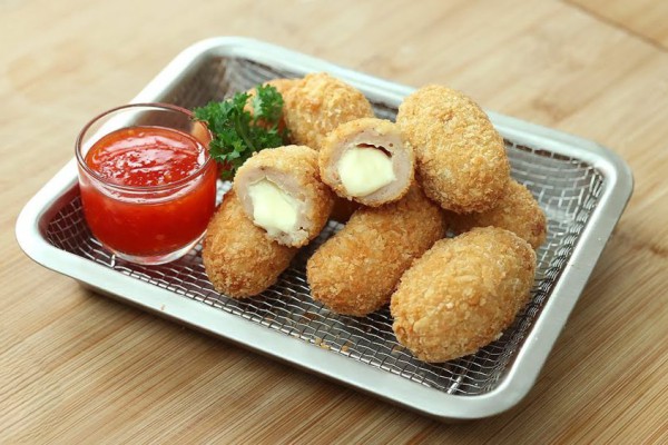 Keju yang sudah siap dihidangkan bersama saus sambal.