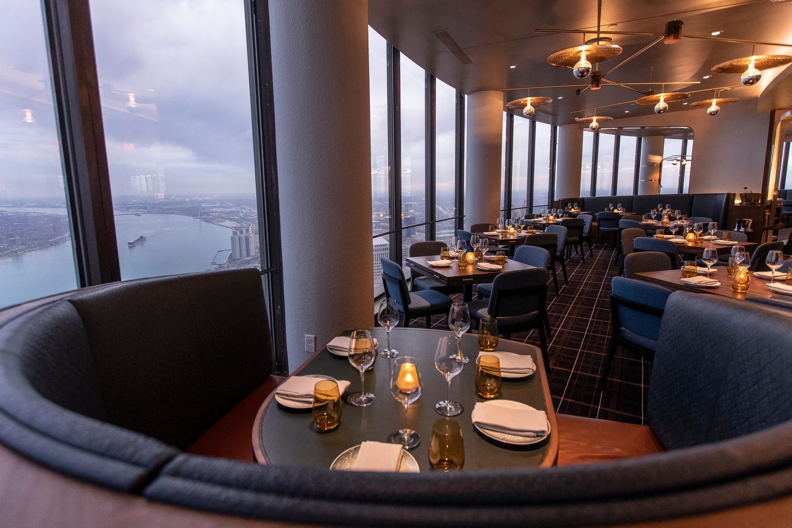 Highlands, GMRencen, 400 Renaissance Center, Lantai 71, Detroit. 313-877-9090; highlandsdetroit.com