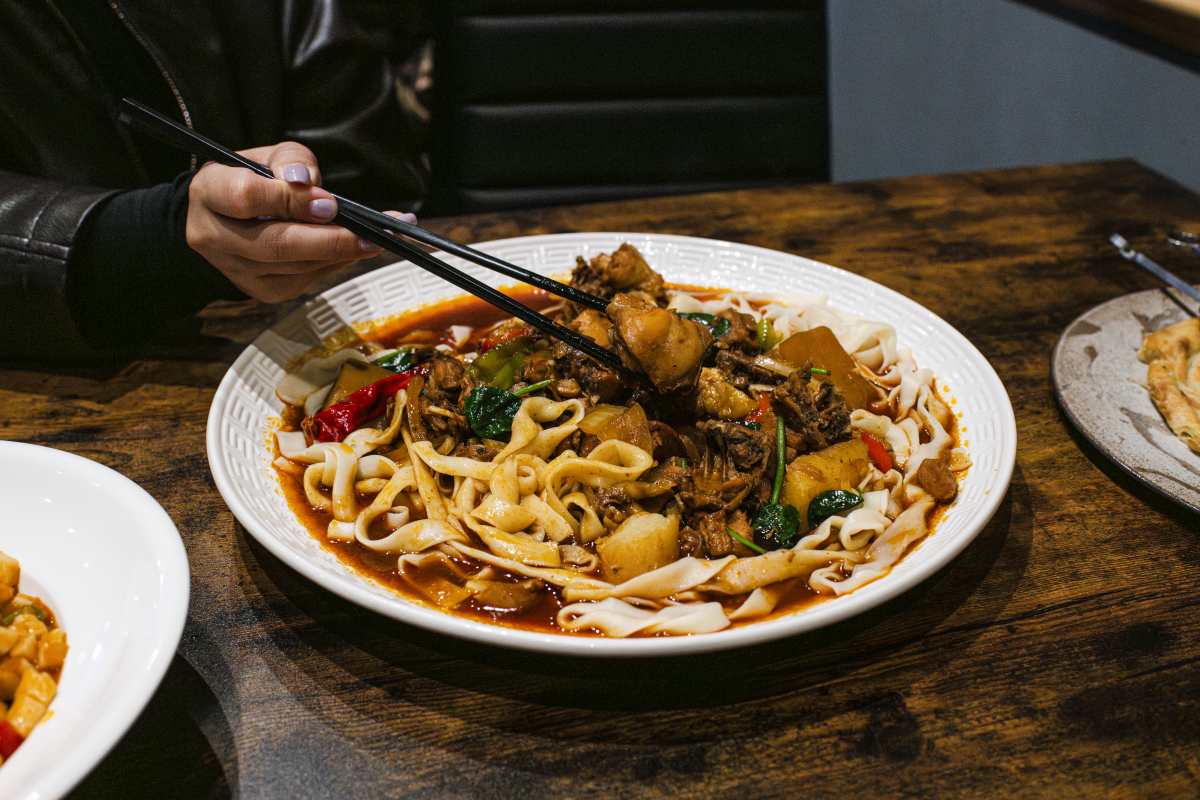Selain cukup banyak lampu lentera untuk membuat tampilan penerangan di John Lewis merasa sedikit tidak aman, Uzbegim diLeytonstonemenyediakan beberapa laghman yang sangat luar biasa. Noodle yang ditarik secara manual dari restoran Uyghur yang santai ini cukup panjang untuk memicu rumor kepatuhan python dan memiliki elastisitas seperti seseorang yang sudah minum kopi keempatnya hari ini. Untungnya, ini adalah tempat yang nyaman di mana tidak ada yang mengedipkan mata pada penggemar noodle yang tidak malu, dan dianjurkan untuk duduk di depan TV dan mengunyah tanpa tujuan.