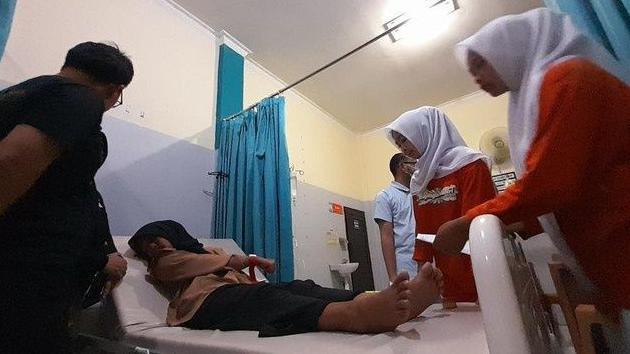 Di rumah sakit, murid kelas 5 SD ini mendapatkan suntikan infus hingga dua botol dan dipasang selang oksigen karena mengalami sesak napas.