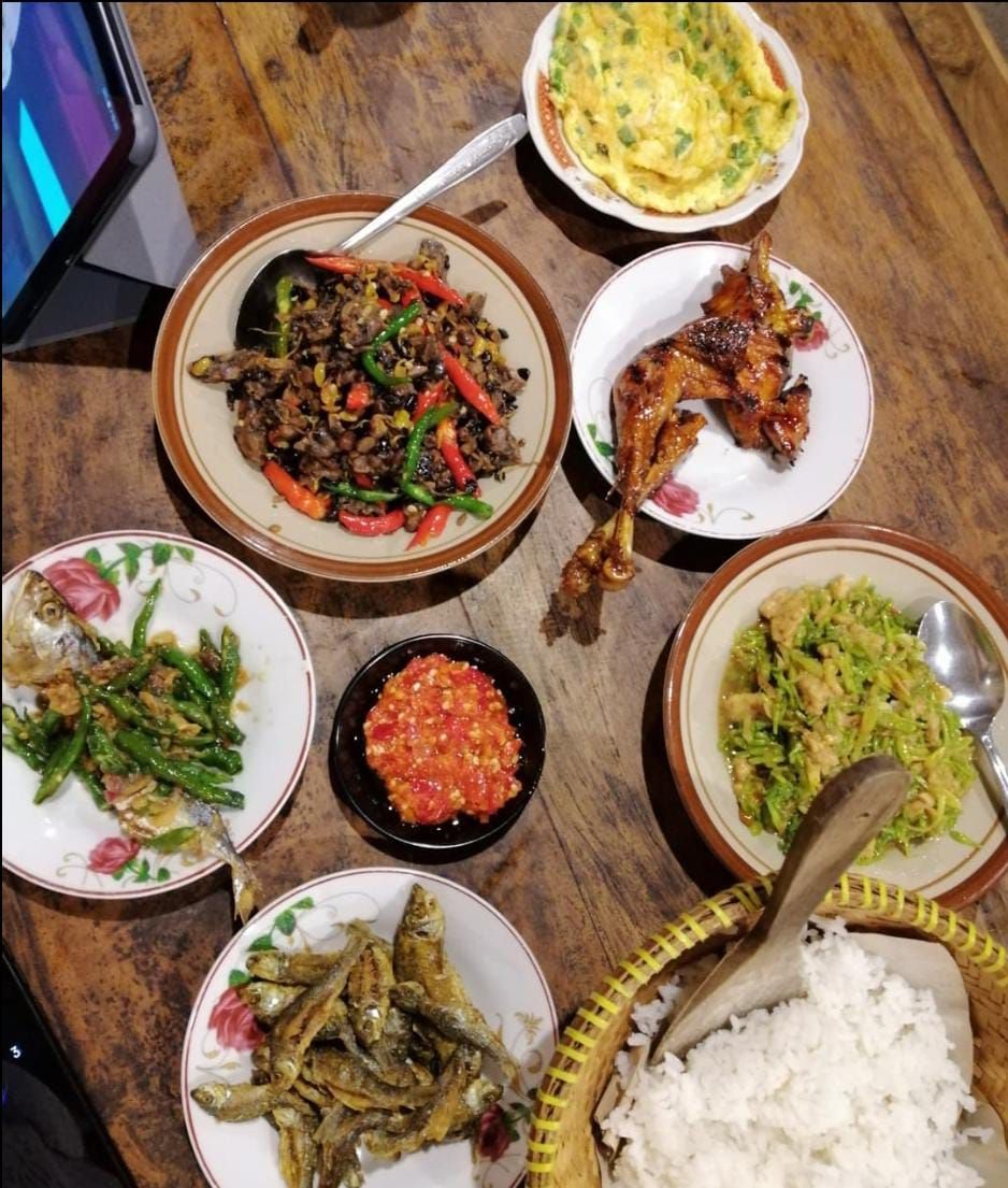 Pilihan masakan pedas kesukaan yang dilengkapi dengan sambal kosek unik, serta ada opsi vegetarian seperti tumisan kangkung dan trancam.