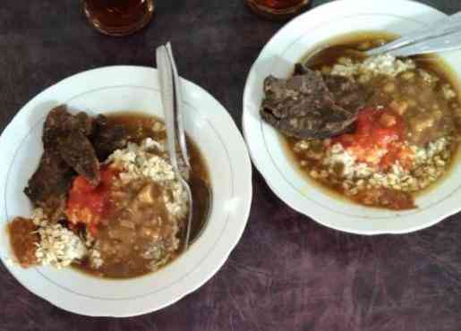 “Saya yang terbiasa makan rawon masakan Mamak sebenarnya agak kaget juga ketika pertama kali berhadapan dengan rawon Bu Katun: warnanya gelap tapi tidak hitam pekat seperti rawon (gelapnya karena diberi kecap manis), lalu diberi semacam tumis semur kental dengan isian tahu dan jeroan, lalu diberi bumbu Bali. Toge pendek biasanya ditaruh di pinggir piring, bareng sambal. Sudah, itu saja. Rasanya ringan, pas sekali disantap pagi hari. Tak ada daging seperti di rawon yang kamu kenal. Sebagai gantinya, ada pemeran pengganti yang lebih nguawur: aneka daging dan jeroan sapi. Favorit ayah adalah empal dan otak goreng. Mamak suka babat dan paru. Saya: otak dan paru. Perhatikan: tak ada kata atau di sana. Alias sekali makan, dua lauk penyumbang angka kolesterol tinggi akan ada di piring. Bayangkan, baru jam 7 pagi kamu sudah ngganyem aneka jerohan penuh semangat. Sungguh vivere pericoloso, sarapan para pemberani. Bu Katun memang punya jam operasional yang singkat. Buka selepas subuh, jam 8 pagi mungkin sudah tinggal sisa-sisa. Meleng sedikit, otak yang lembut itu sudah lenyap dari pandangan. Selain itu, menunya memang cuma satu, ya rawon itu.”