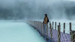 – Menjajal wahana unik seperti ayunan di atas sungai.
