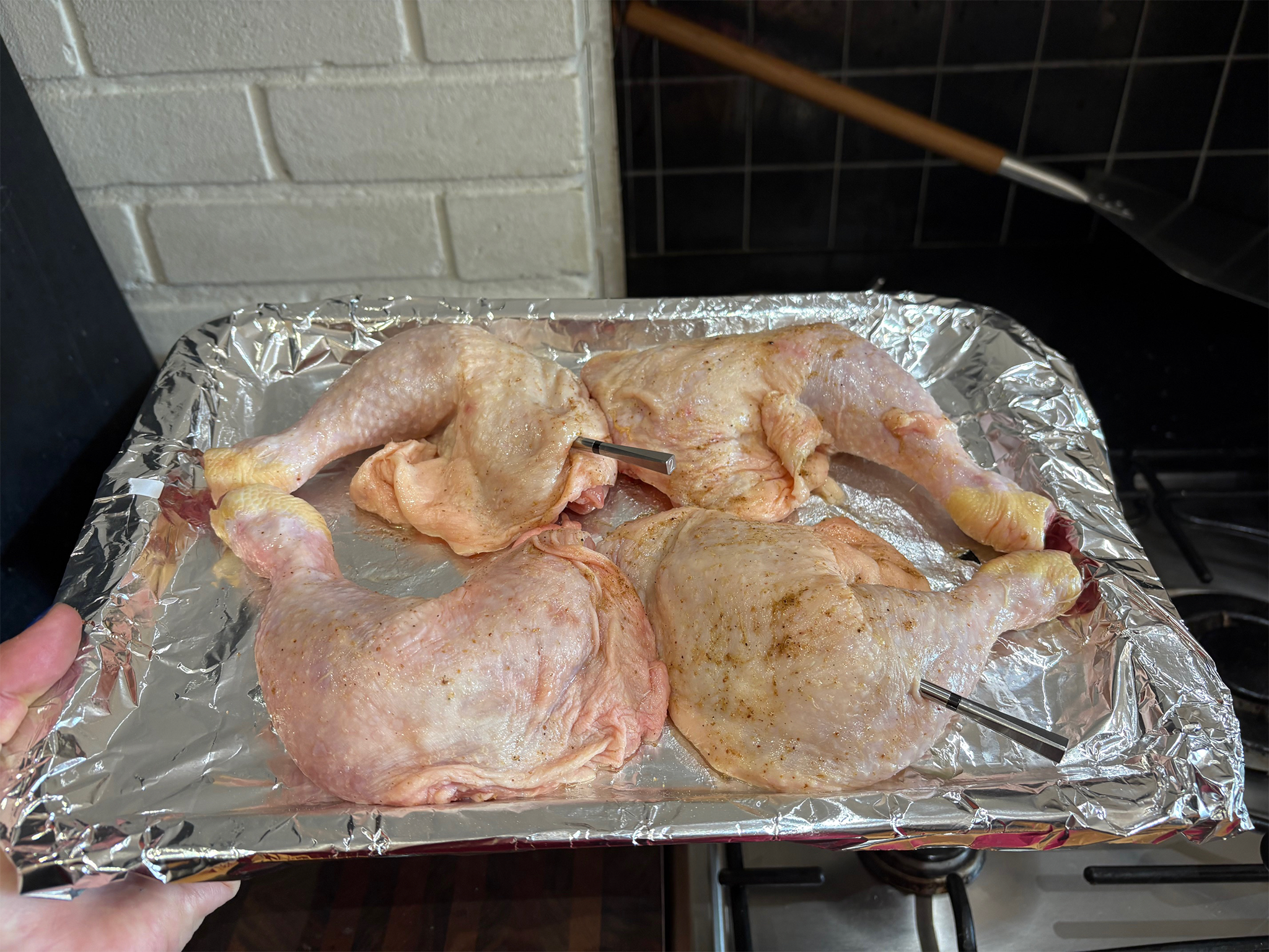 • Memasak dunia nyata:Saya menggunakan termometer untuk memasak berbagai macam hidangan, memastikan mereka dapat menangani berbagai jenis daging dan metode memasak. Ini termasuk hidangan ayam Siprus satu loyang (di mana tujuannya adalah memastikan ayam aman tanpa nasi menjadi lembek), ayam goreng udara, braise babi rendah dan lambat, serta potongan daging sapi besar yang dimasak di panggangan.