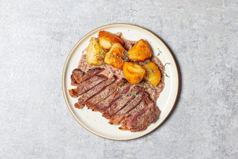 Steak dengan kentang panggang dan saus perayaan