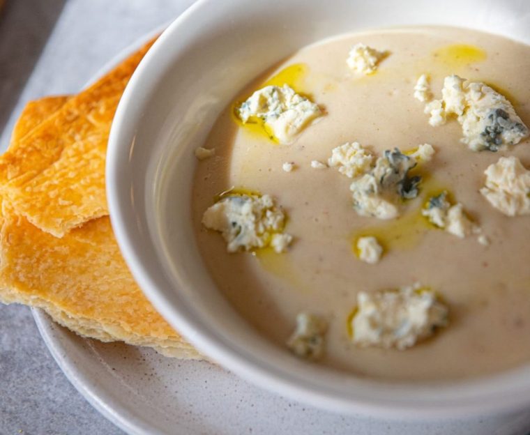 Sup Tepung Parsnip dengan Keju Biru dan Kue Kering Crispy